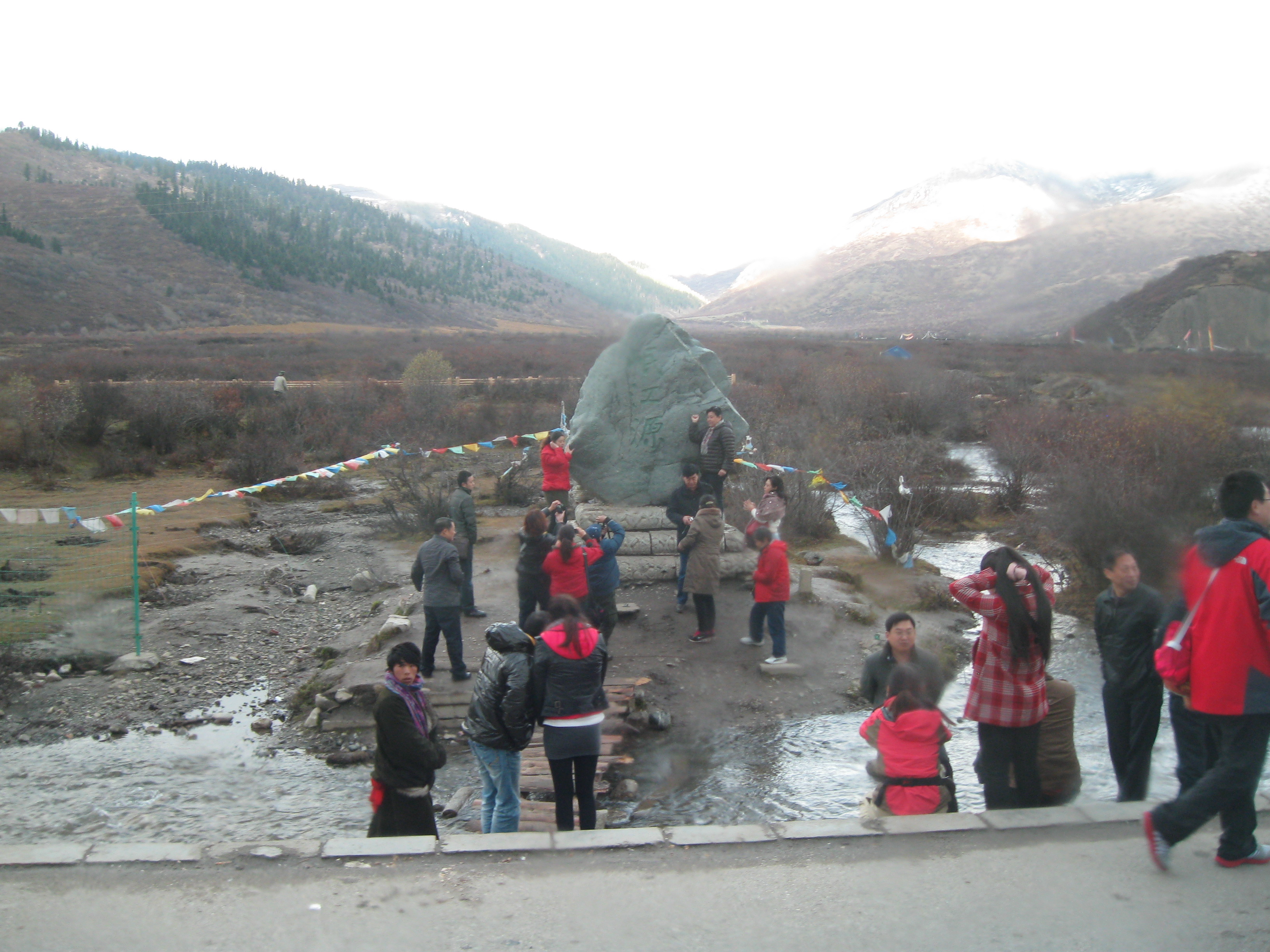It is a rock.  No, no, not just any rock!!  A rock with a Chinese engraving of the current, geographical location!  Now you remember (from your previous trips to China) that Chinese people absolutely love taking photographs of rocks with Chinese characters on them.  In fact, in the mere presence of such a rock, the Chinese become completely oblivious to their surroundings.